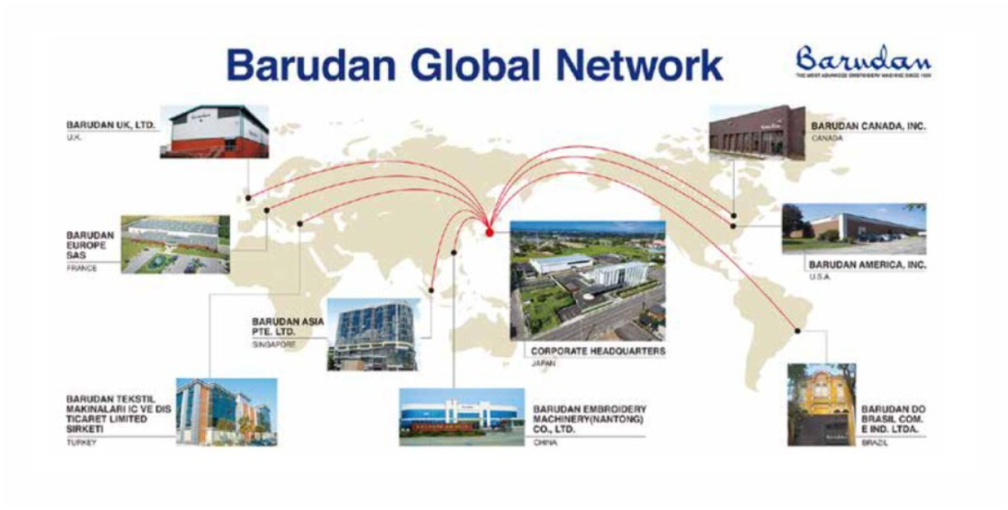 A Rede Global da Barudan se expande para 10 empresas do grupo em 9 países ao redor do mundo, e a Barudan inicia uma nova trajetória de sucesso rumo à próxima geração.